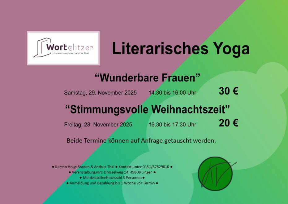 Ich freue mich sehr, dass ich Sie auf die Veranstaltungsreihe „Literarisches Yoga“ aufmerksam machen kann.